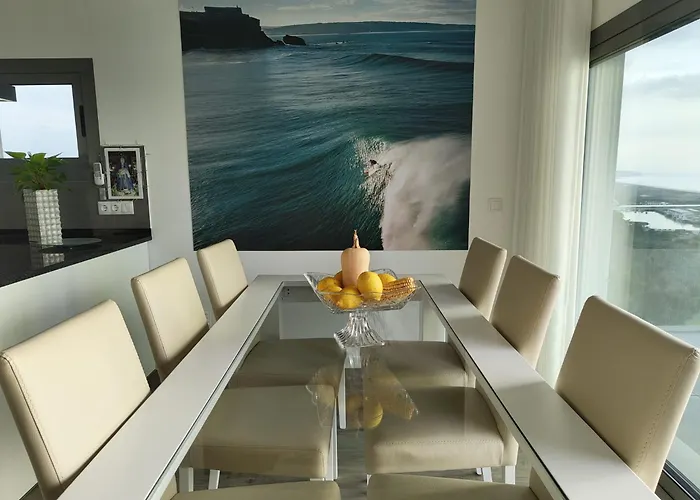 Das 2-Zimmer-Macarico'S Guest House Nazaré liegt in etwa 25 Gehminuten Entfernung vom Fort Sao Miguel Arcanjo und bietet einen privaten Swimmingpool. Diese 110 m² großen Apartments verfügt über eine Terrasse mit einer Küsten- Aussicht.
